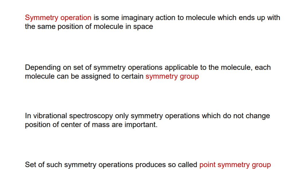 Investigate the symmetric and asymmetric movements; symmetry operations and symmetry group of the molecule. We know if if