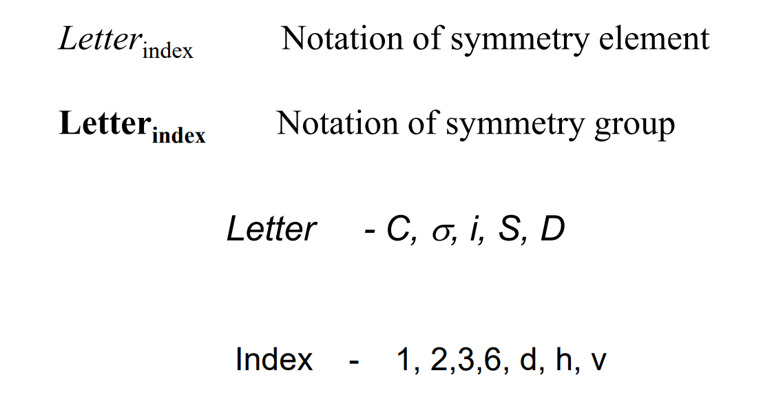 5 types of symmetry elements are sufficient to define symmetry of any molecule concerning vibrational movement.