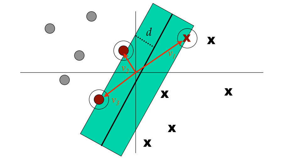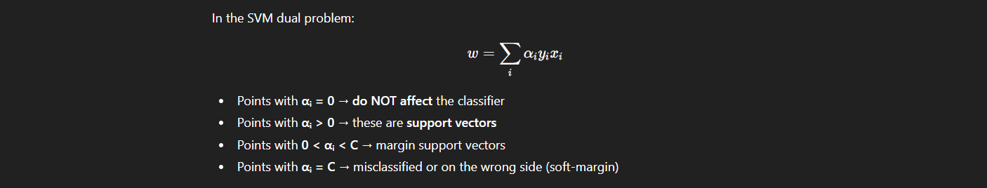 Note that, support vectors have nonzero weights, and by maximazing the margin we try to